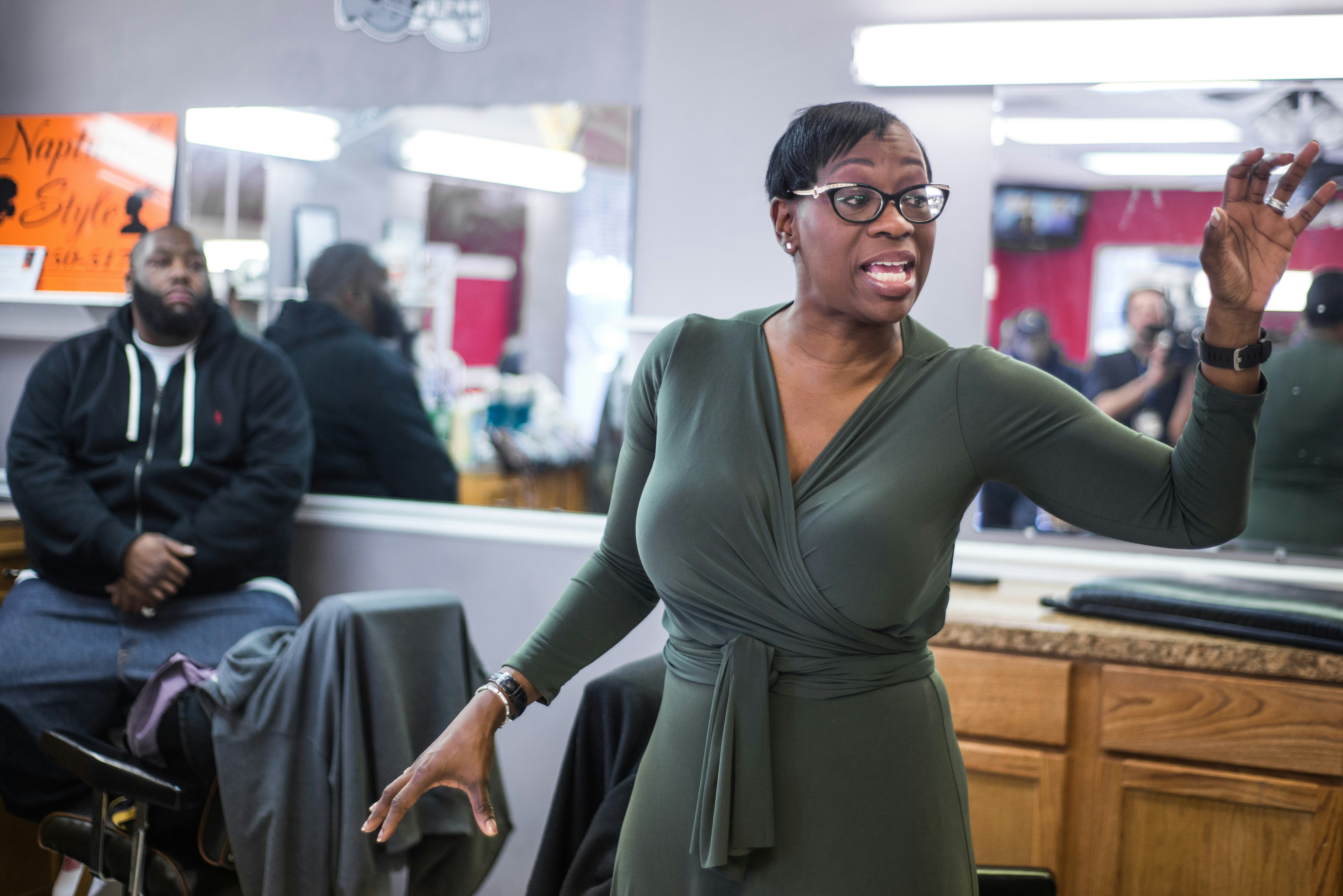 Nina turner waits backstage to be introduced ahead of sen.
